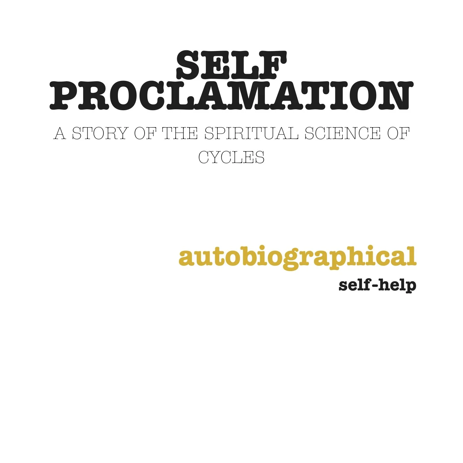 Self Proclamation is a poignant and insightful journey that intertwines personal narrative with spiritual wisdom, offering a compelling exploration of growth and enlightenment. Through its intimate storytelling and thought-provoking reflections, this book serves as a compassionate guide for readers seeking to navigate life's challenges and uncover their own path to fulfillment.